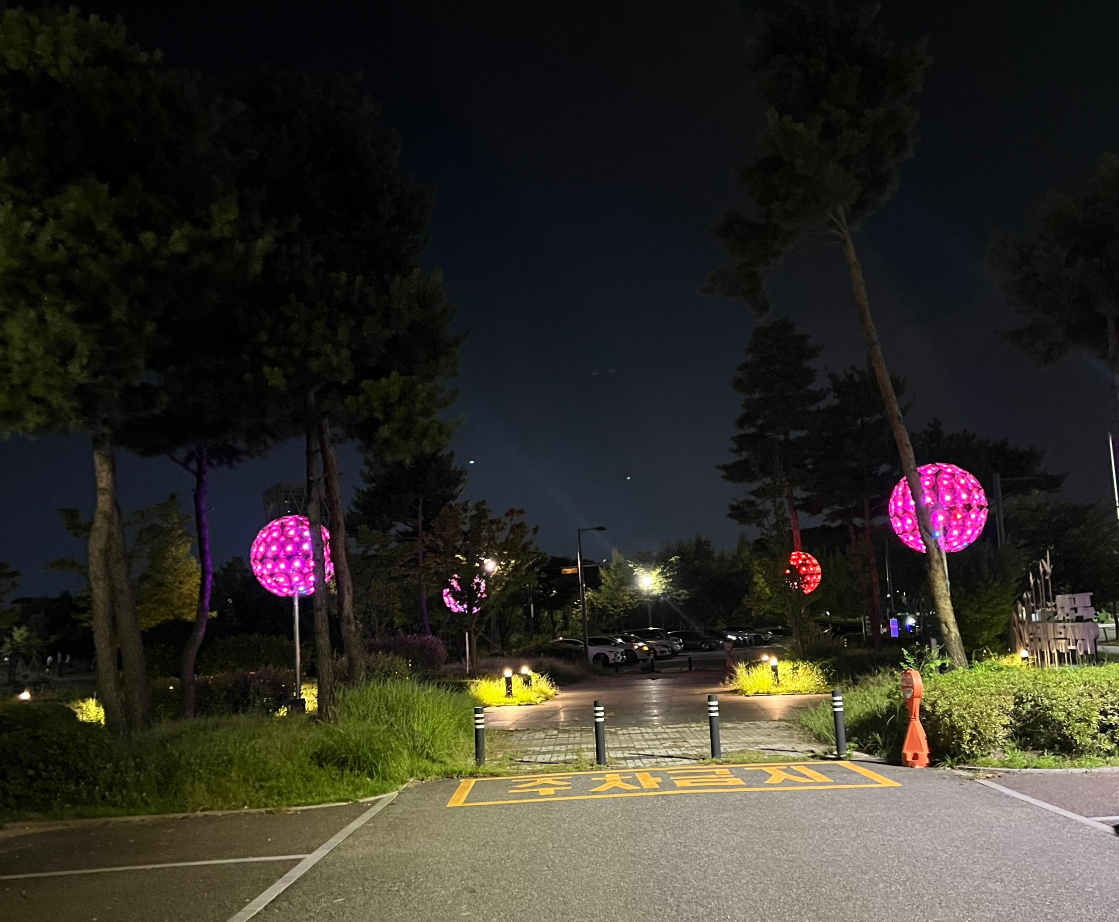 산책길 중간중간 가로등이 은은하게 켜져서