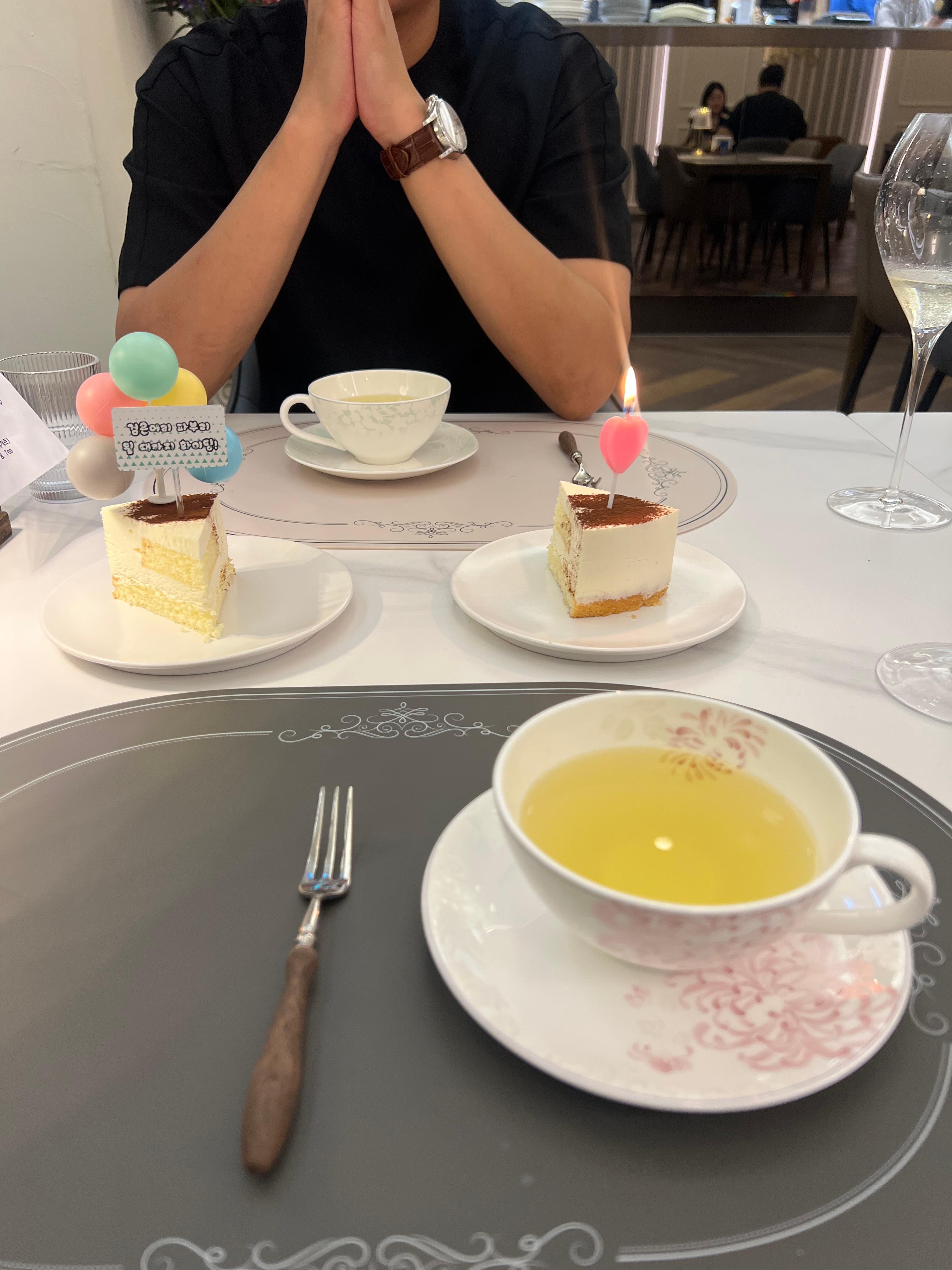 서빙해주시던 사장님이 케이크를 내려놓으시면서